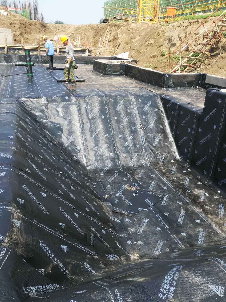 底板部位第一道SBS卷材空铺、点铺法施工,仅在需要固定定位的周边、几何形状在三维空间变化部位、附加层以及电梯井、集水基坑等部位热熔满粘;双层卷材之间热熔满粘固定。挡土外墙及柱面SBS卷材与基层、卷材与卷材之间均热熔法满粘施工。